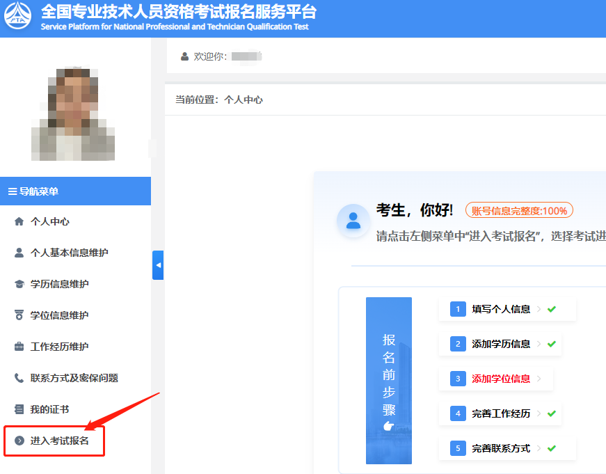 第三步:点击左边导航【进入考试报名】