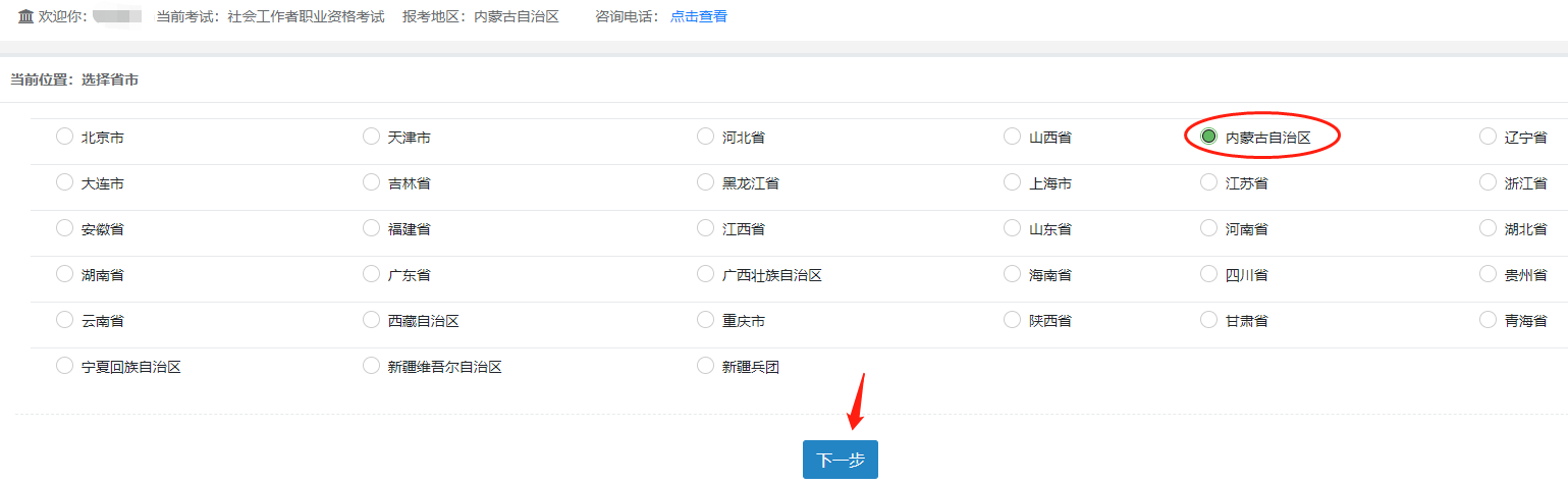 第五步:选择报考的地区,查看【报考须知】【报名须知】,点击【阅读并知晓】
